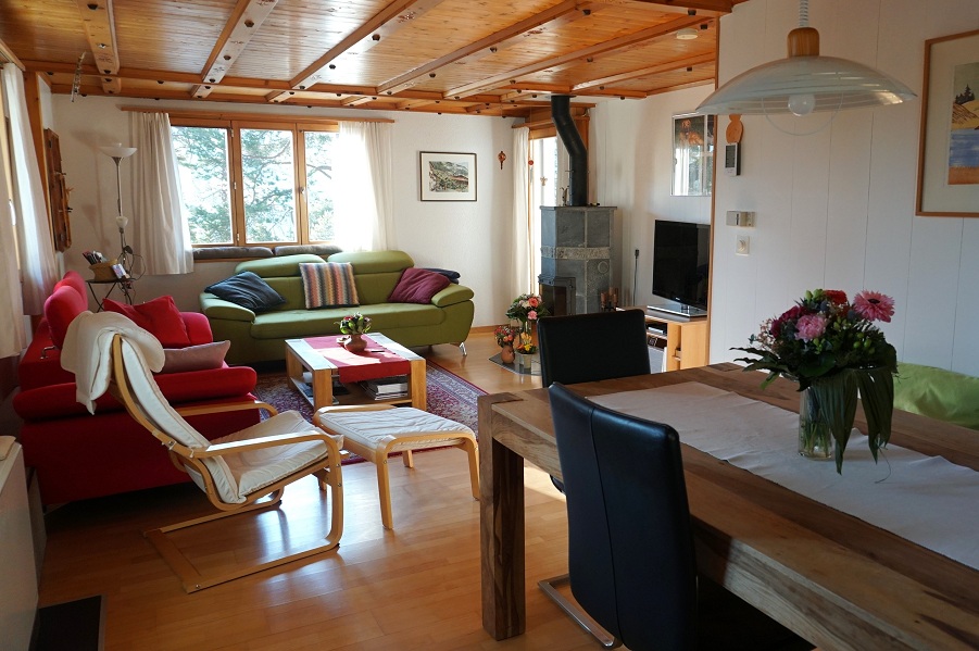 Das im Jahr 1972 erbaute und 2001 renovierte Einfamilienhaus verfügt über eine Wohnfläche von ca. 116 m². Im Erdgeschoss befinden sich eine geräumige Garderobe, zwei Schlafzimmer, eine Nasszelle sowie der Zugang zur Garage. Im 1. Obergeschoss stehen eine weitere Nasszelle, die Küche, ein weiteres Schlafzimmer sowie ein heimeliger Wohn- und Essbereich mit Specksteinofen und Zugang zur grosszügigen Terrasse zur Verfügung.